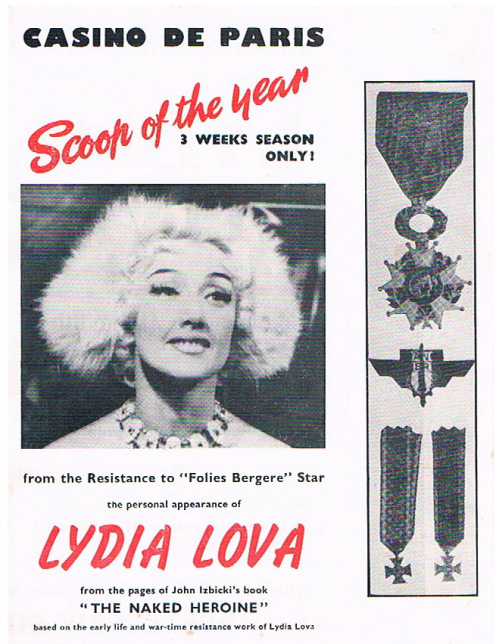 Izbicki was curious to know more about this woman and her involvement in the resistance movement, and also what she was doing currently. As luck would have it, he soon received a phone call from his Journal Official contact who informed him that Mlle Lipski was better known as Lydia Lova, and she was currently the headlining nude dancer at the Folies-Bergère. This intriguing story had now turned into a sensational scoop for Izbicki. He was thrilled to have the opportunity to learn more about this remarkable woman and share her story with others.