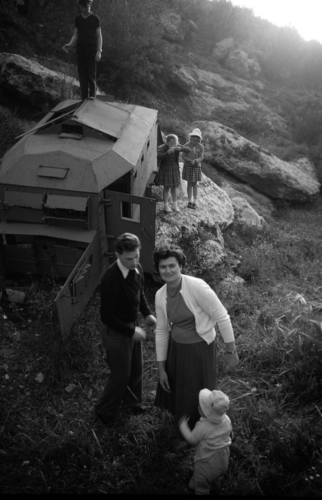 The girl who was third from left in the sandbox photo, then Dolly Citroen, was shown with her husband, Shmuel Shoshan, and three of their four kids, on a picnic outside Jerusalem.