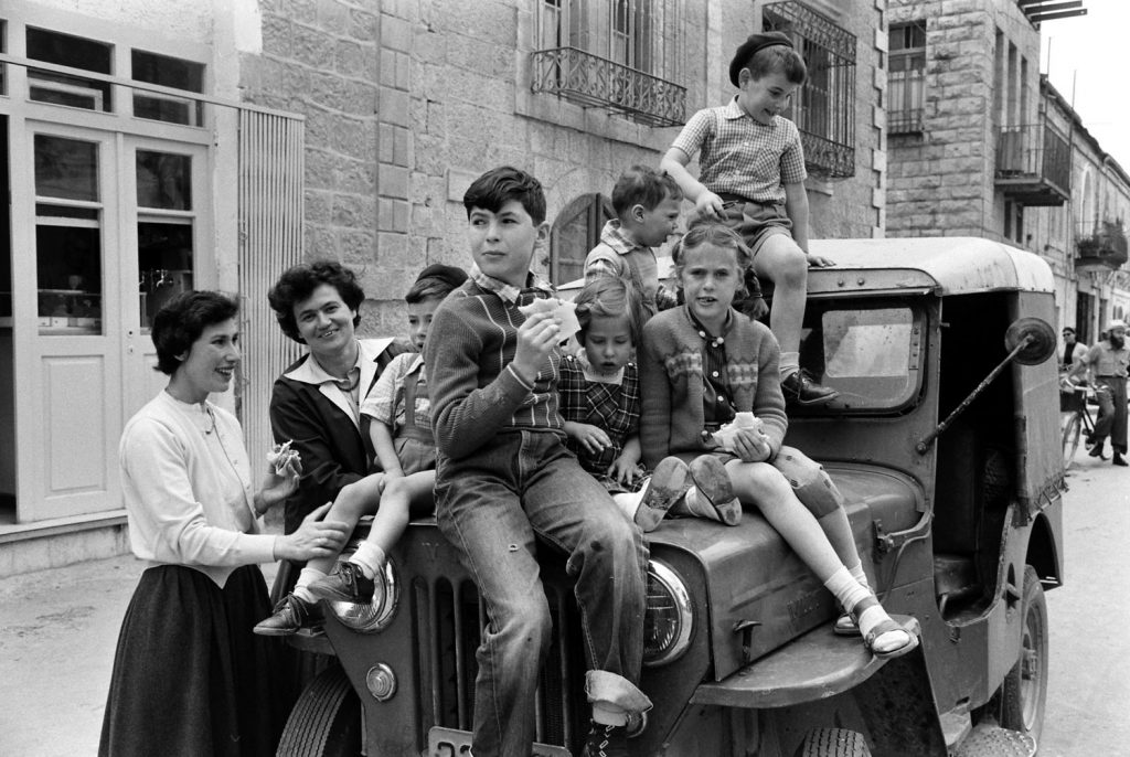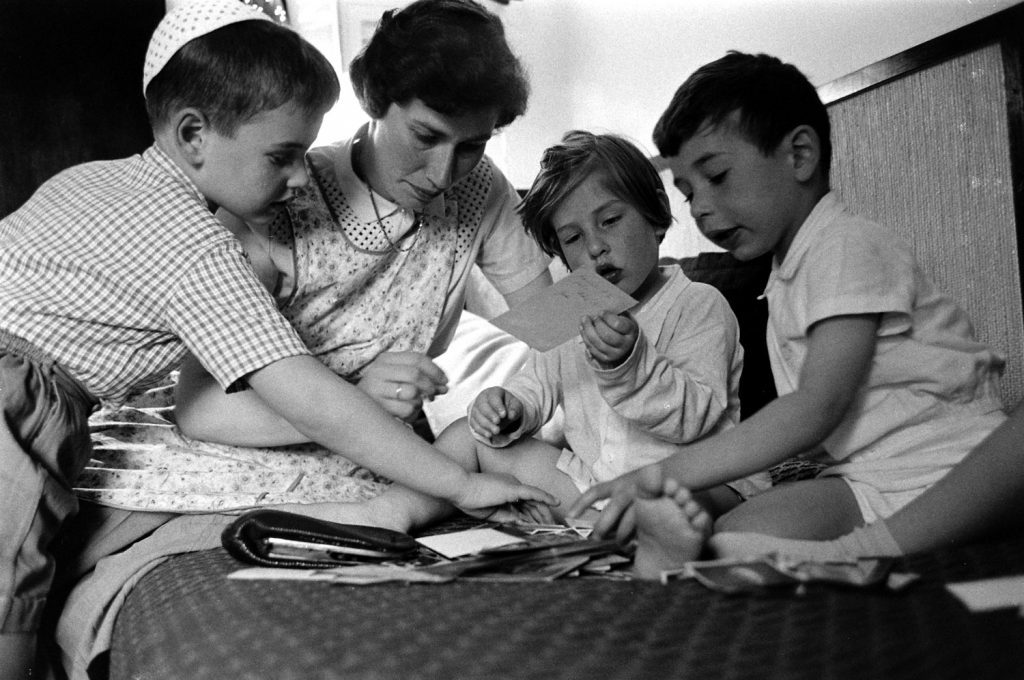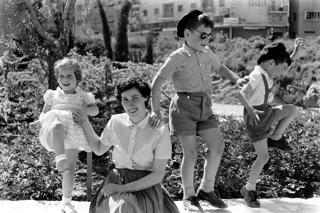 Hanneli and Dolly, childhood friends of Anne Frank, with their children in Jerusalem, 1959.