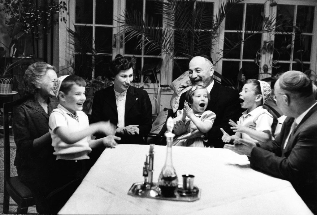 The former Hanneli Goslar, now married to Dr. Walter Pinchas, in Jerusalem with her family, 1959.