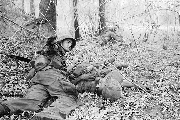 American soldiers using a shirt as a makeshift stretcher to carry a wounded comrade from the jungle near the Cambodian border in Tay Ninh, South Vietnam. The scene was captured on April 6, 1967, during “Operation Junction City,” a military campaign conducted by the United States during the Vietnam War. The operation was focused on disrupting enemy operations in the region, and it involved heavy fighting which resulted in casualties on both sides. The wounded soldier in the image is being carried to receive medical attention, highlighting the dangers faced by the soldiers participating in the operation.
